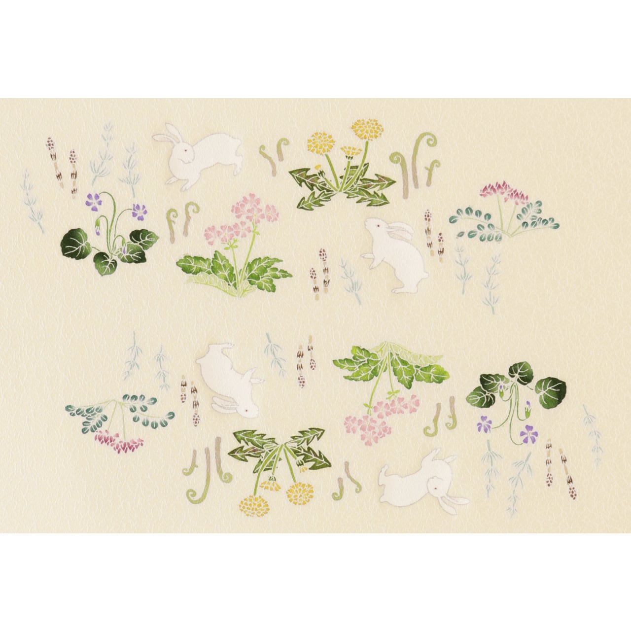 春草の野原を駆け回る兎を描いた洒落帯です。