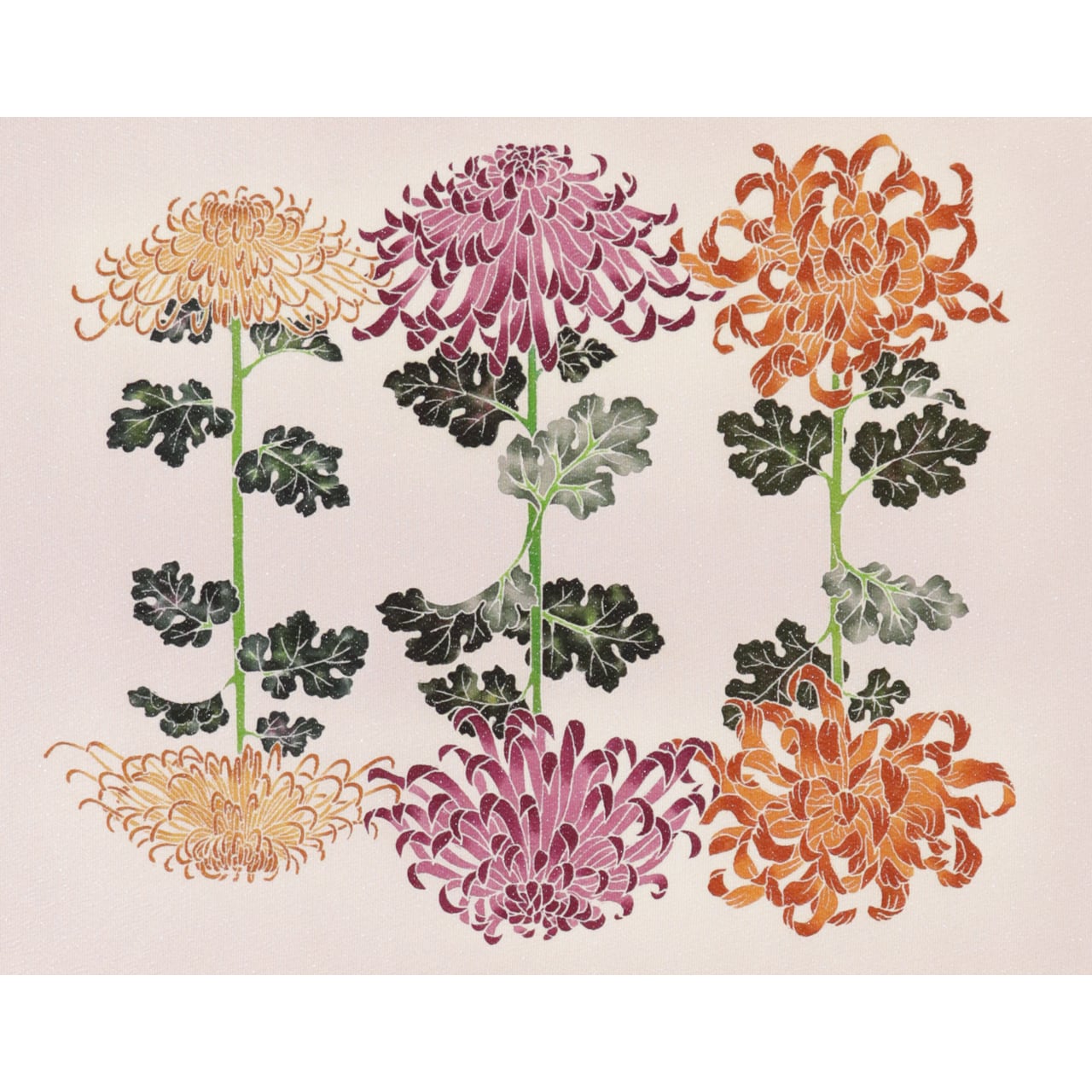まっすぐに咲き誇る乱菊で、美しい立ち姿を演出できる洒落帯です。